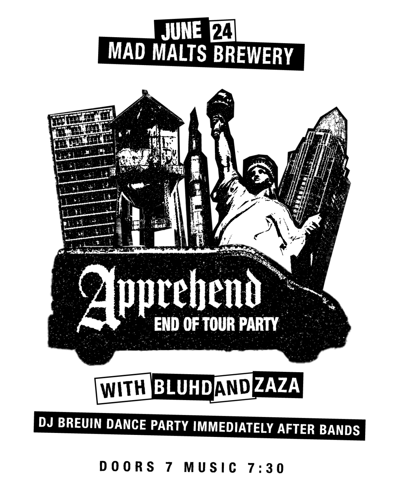 Flyer for Apprehend's end of tour show.
