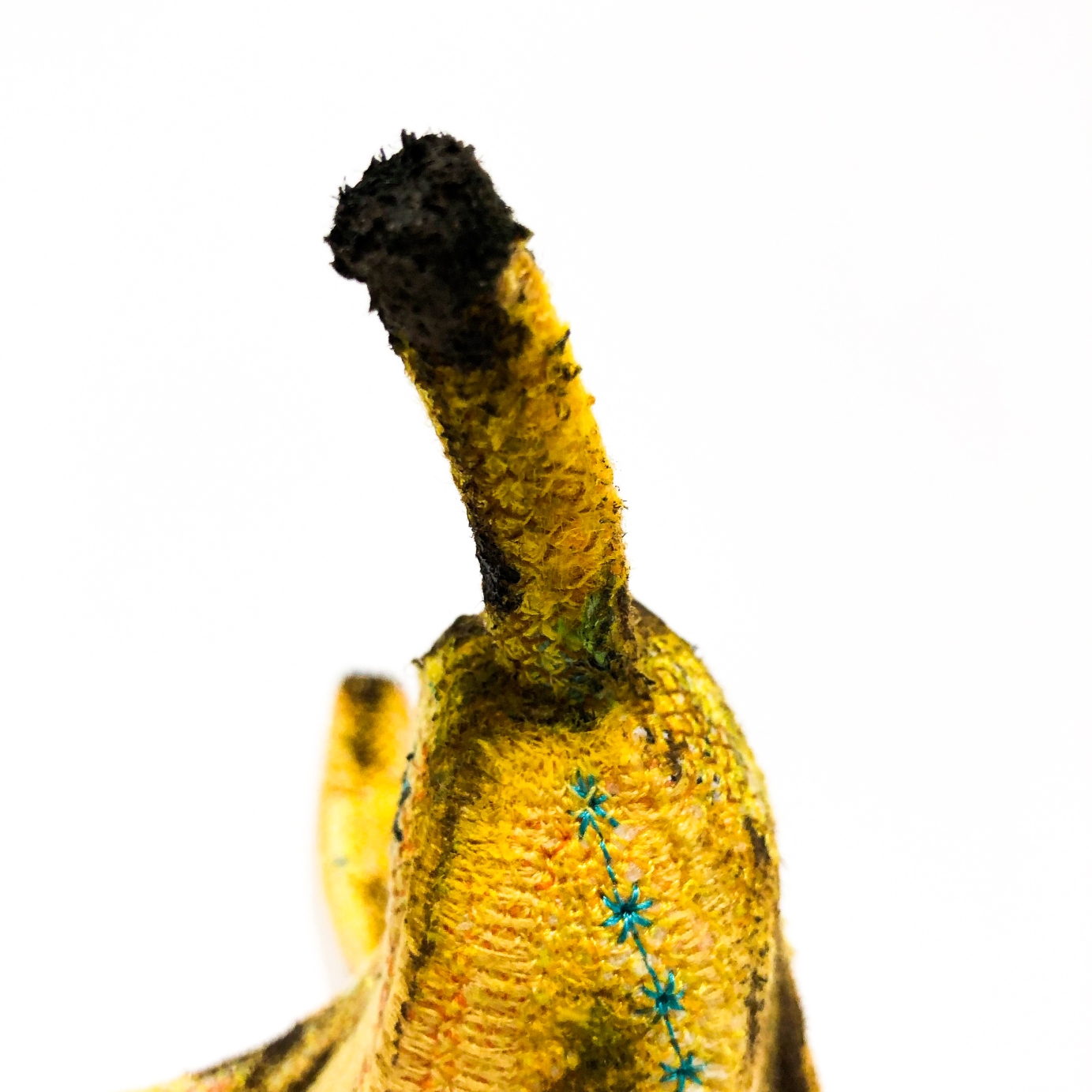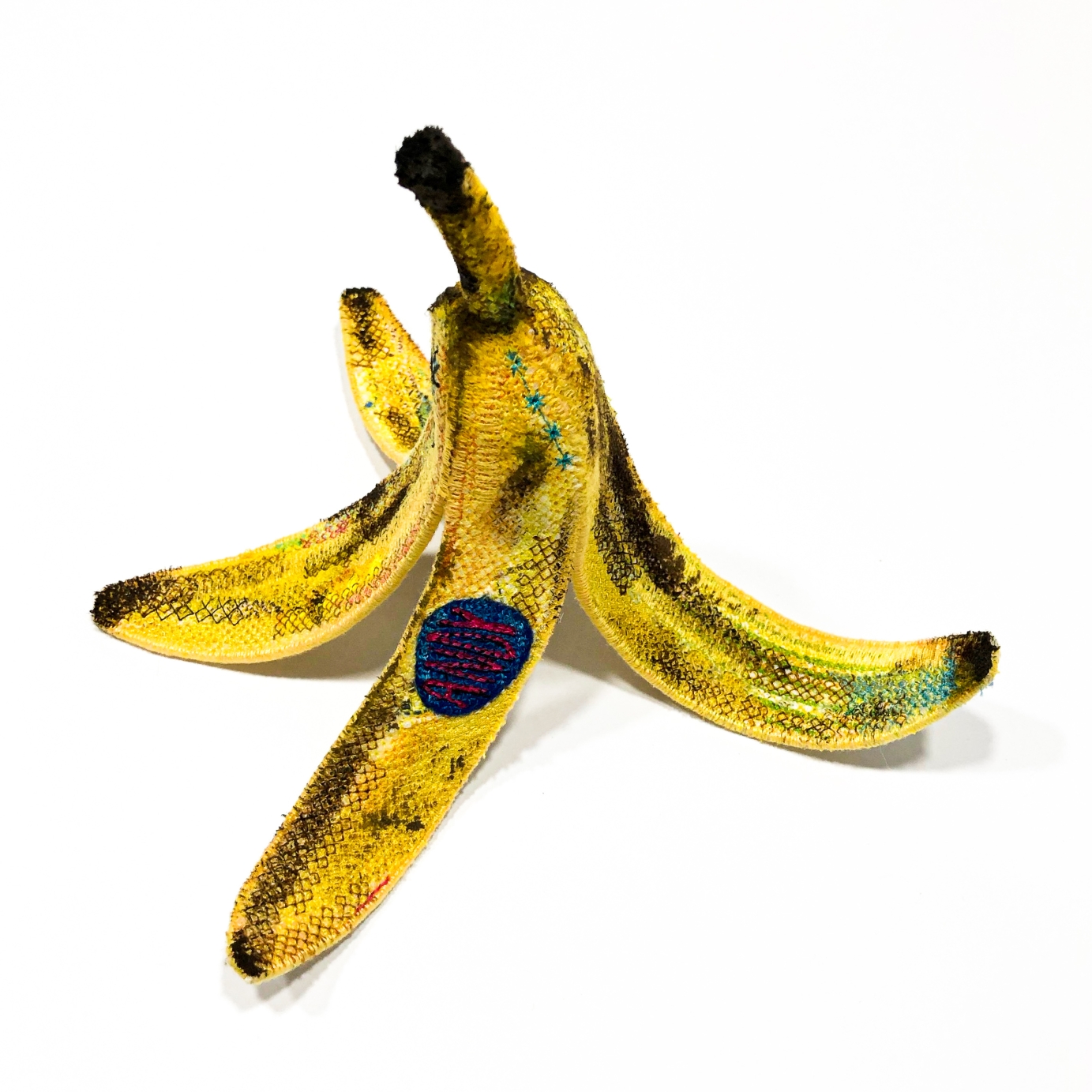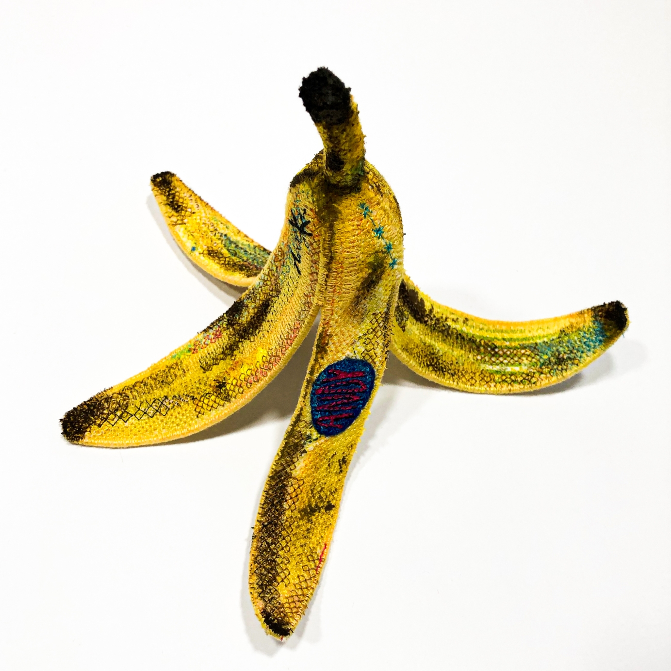 "Andy" work created in 2019 from felt, cotton and other materials commonly found in production, made with the artquilt and embroidery technique. My inspiration to create the “embroidered ordinariness” series is everyday consumerism, popular and well-known brands from around the world, which have permanently entered the canons of mass sales and the world of advertising. Creating sculptures, my goal is to make the recipient realize that art is contained in every, the most obvious object and creates a unique work out of it, even in the mass reception zone. Despite the fact that mainstream pop art is considered as out of date, drawing inspiration from Andy Warhol's works, I made a banana peel, to indicate that this trend despite the lack of interior art, can still sounding in life and work. "Andy" work is my look at today's pop art and what from that trend we can find in the current trends in art.