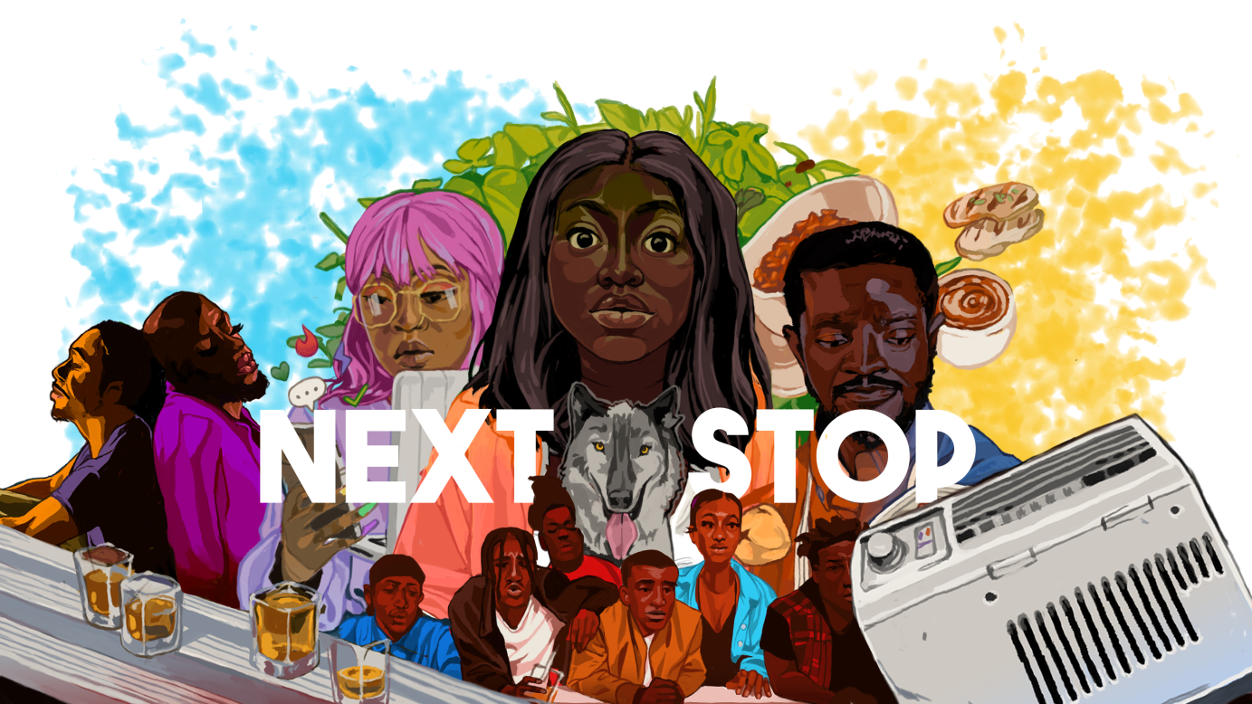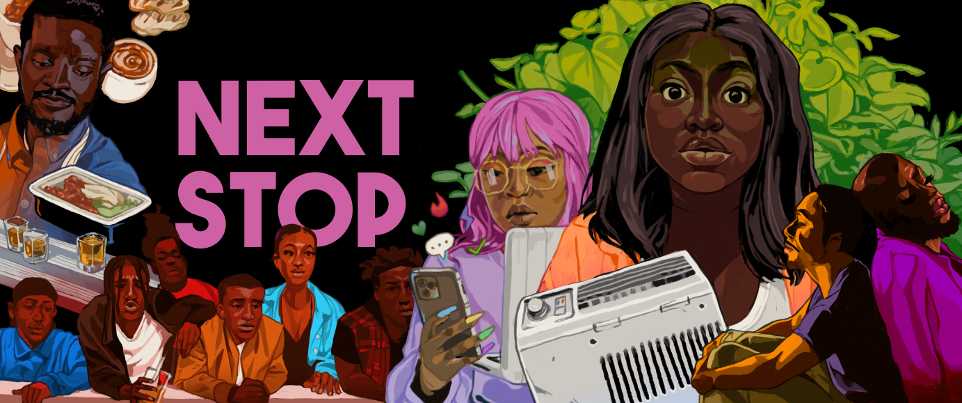 Artwork to promote CBC Gem Original Series "Next Stop". Assorted iterations and dimensions were used as a poster, streaming site carousel, web and print advertisement.