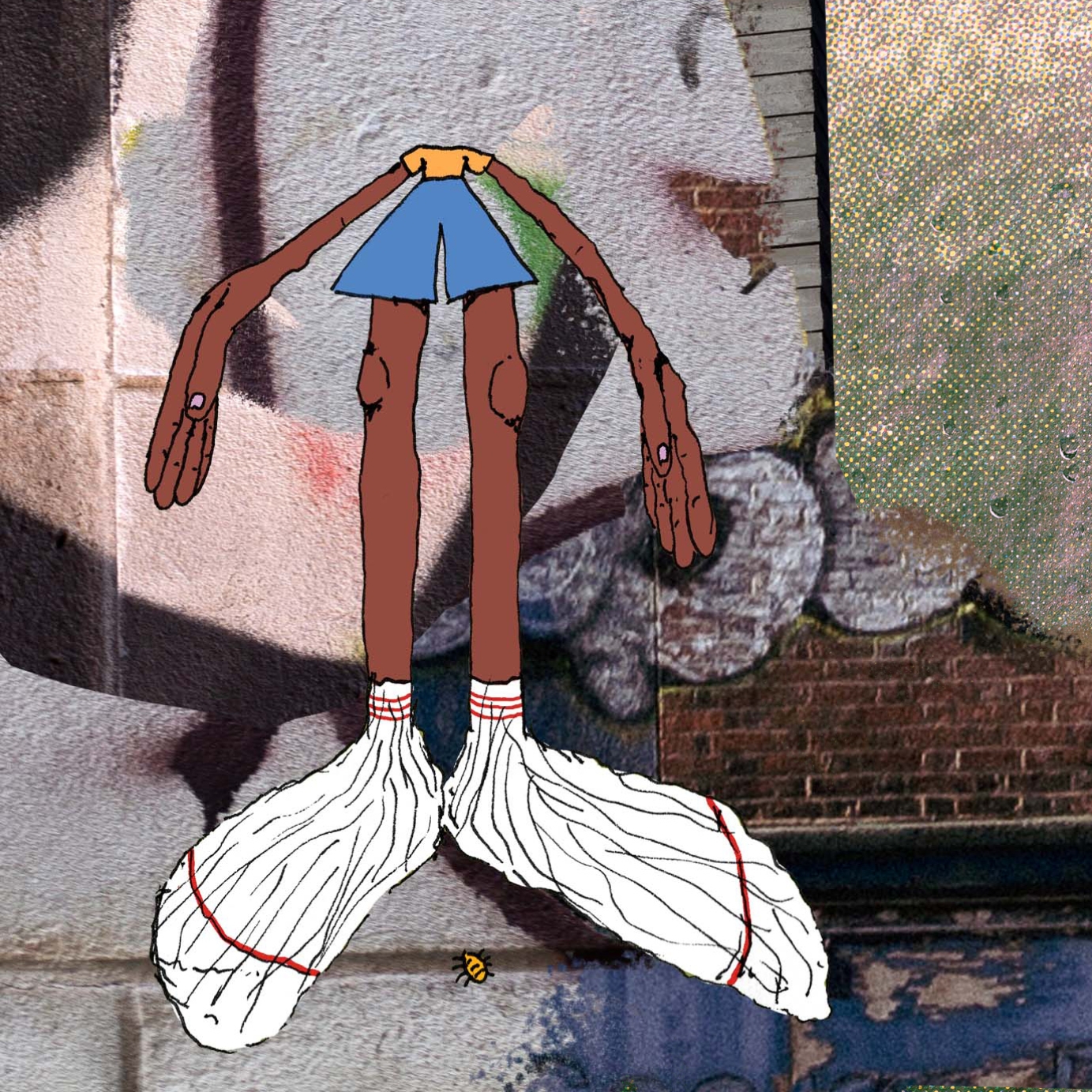 Ink drawing, digital colours and collage.
