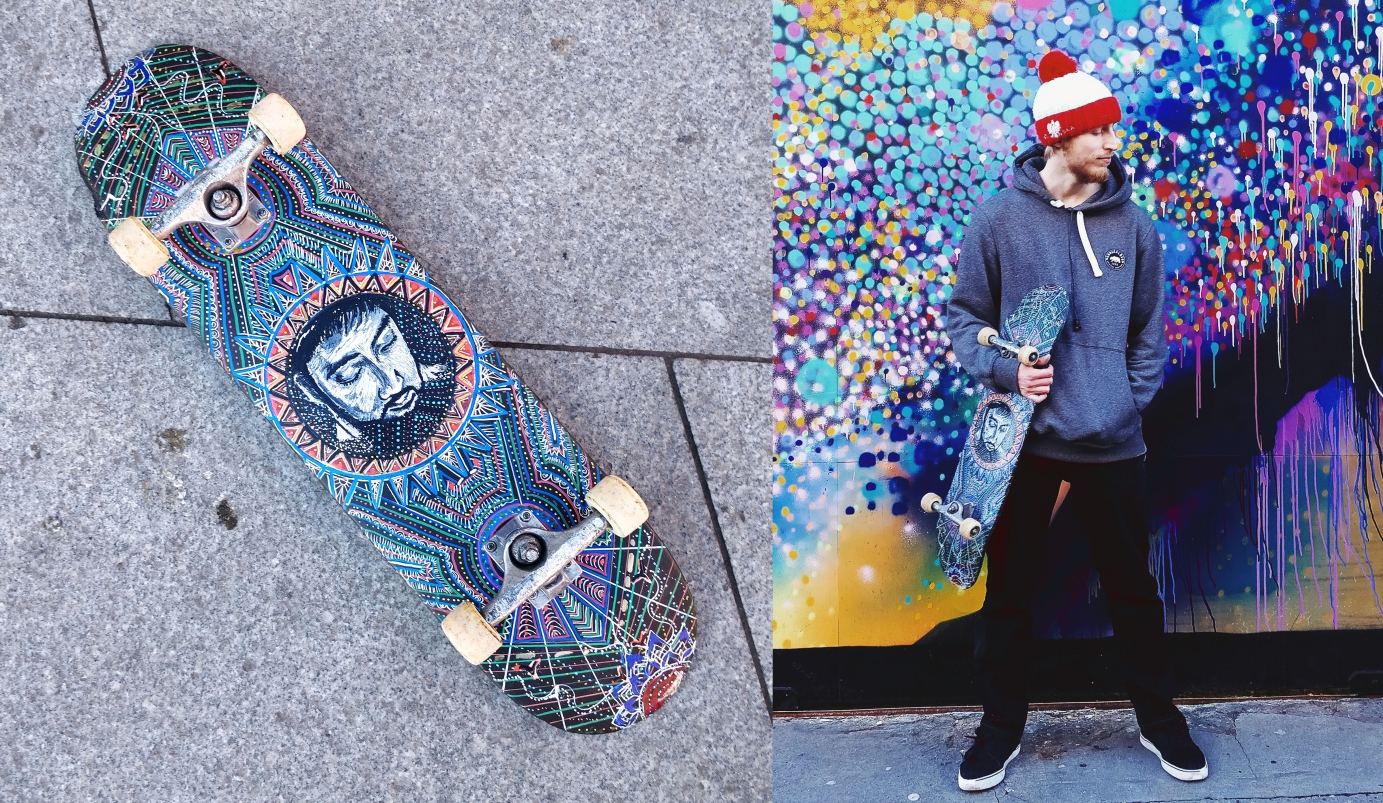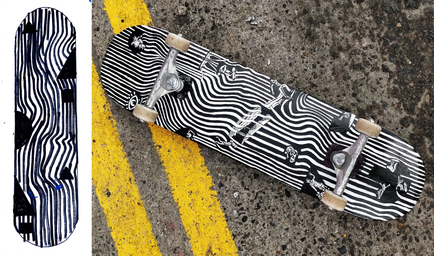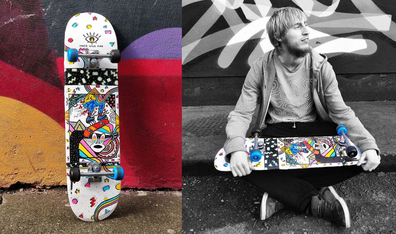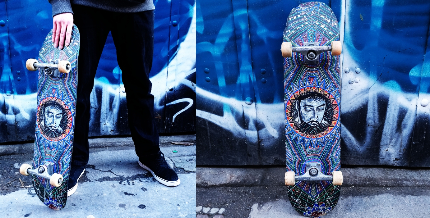 I was asked to create a series of skateboard designs for the skater Jack Bennet. He wanted me to create the series inspired by his favourite musicians, places he had visited and colours he was inspired. The result was three very unique skateboards in different designs and colours. Created using acrylic paint, paint markers and varnish on top. Photography by myself and model is Jack.