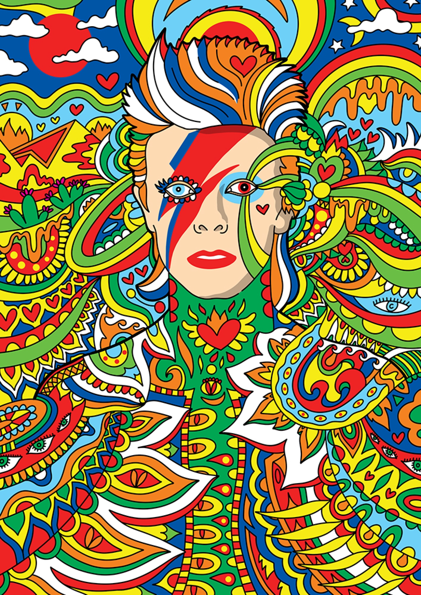 A psychedelic illustration of the musical genius David Bowie.