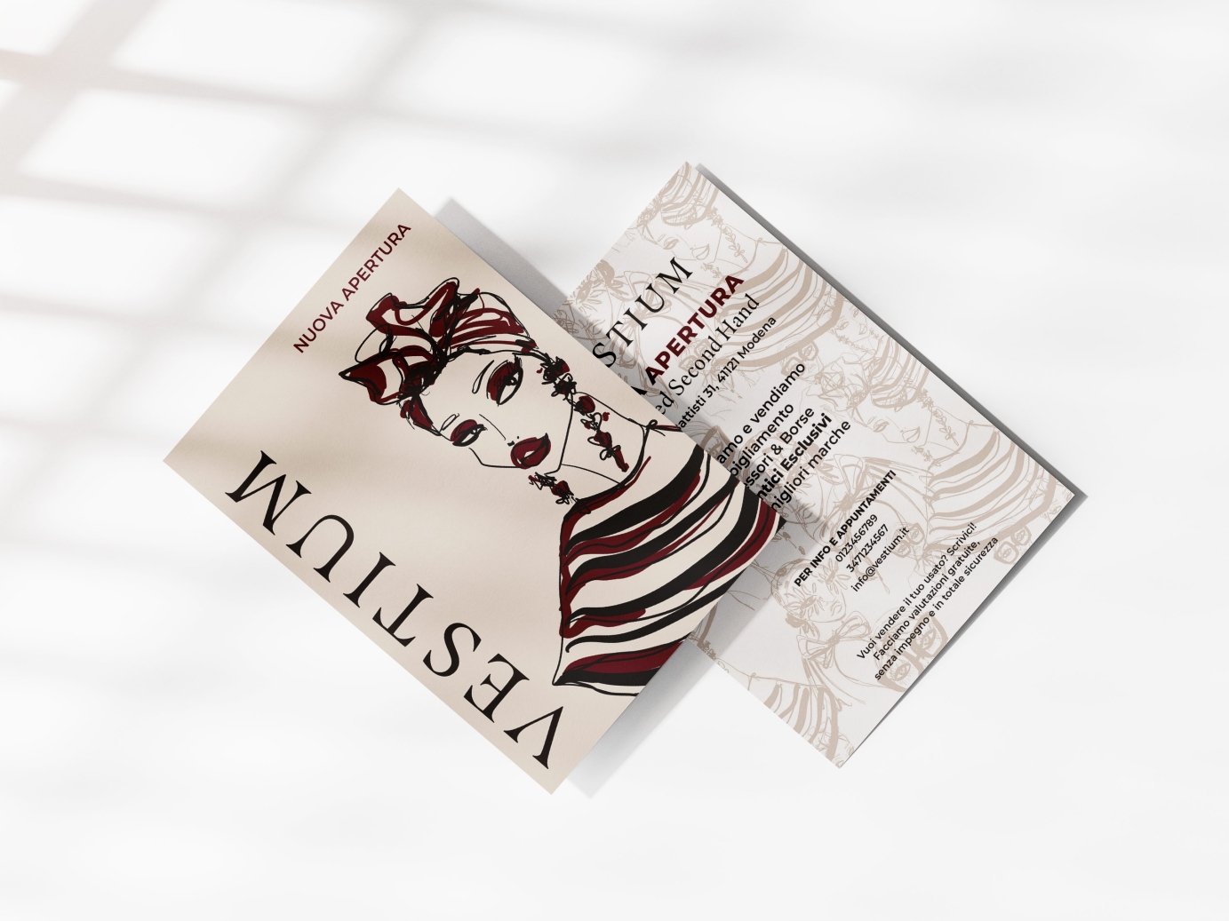 Vestium is a luxury fashion boutique in Modena, Italy, selling pre-loved high end fashion garments and accessories. The concept was based on creating a matching image and feel for both the space and brand identity. It is like stepping into someone else's wardrobe, to give a new life to those pre-loved objects.