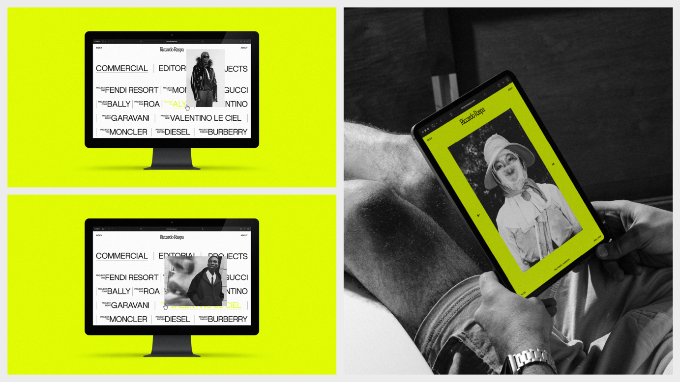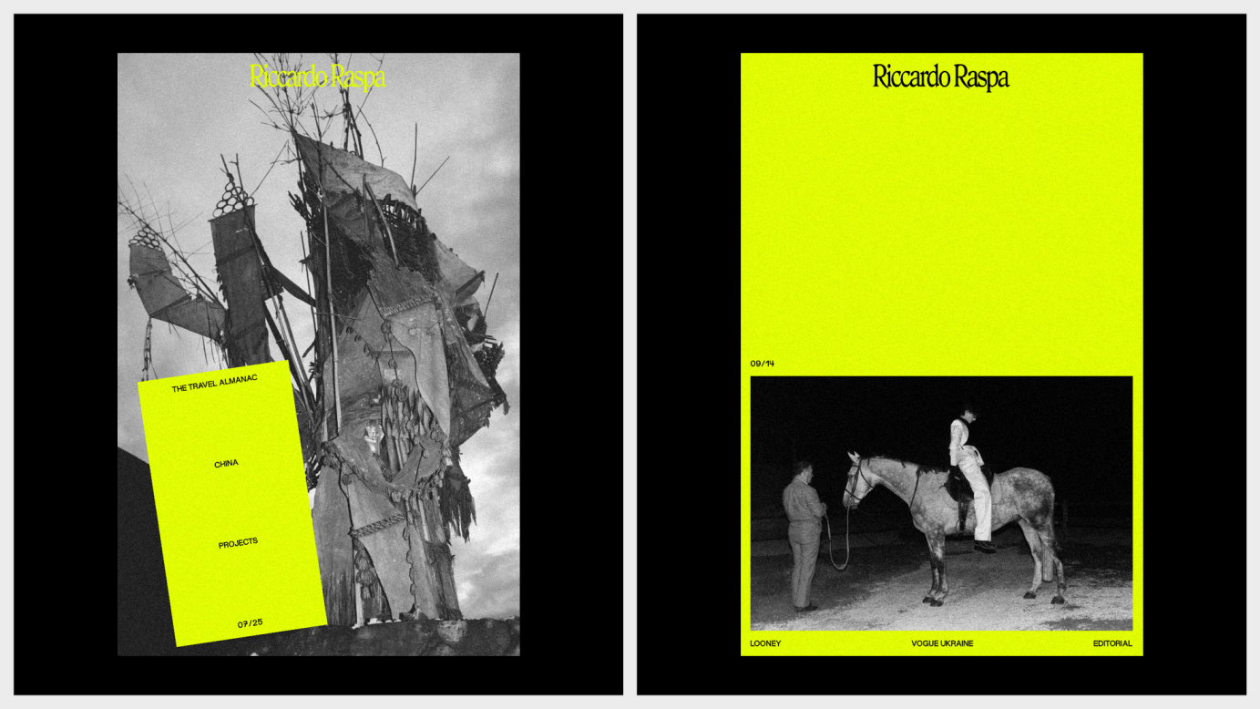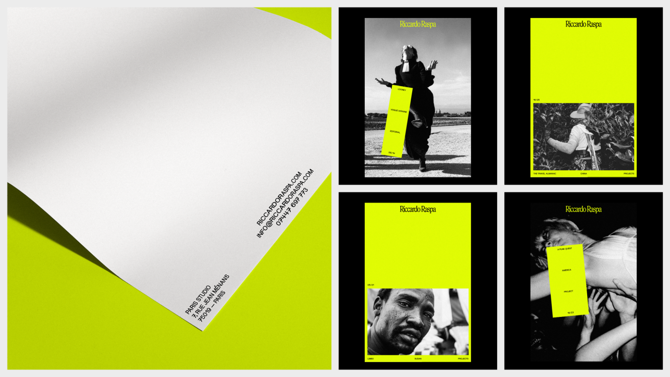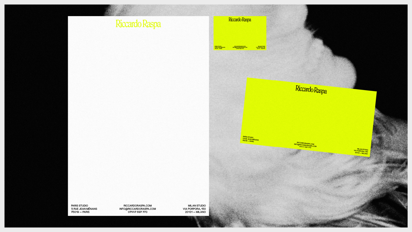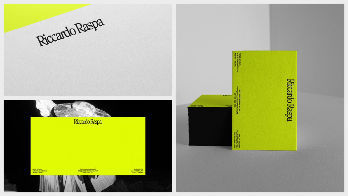 Brand identity design for fashion photographer Riccardo Raspa.