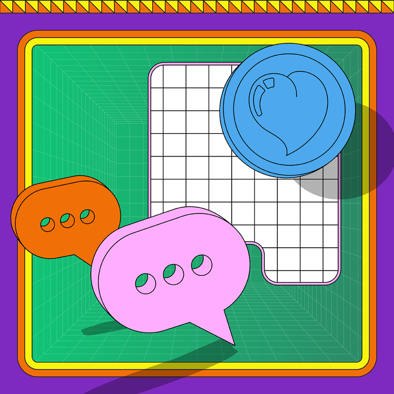 Funky cyberspace inspired graphics created as part of a fun brand for a top-secret TV project last year.