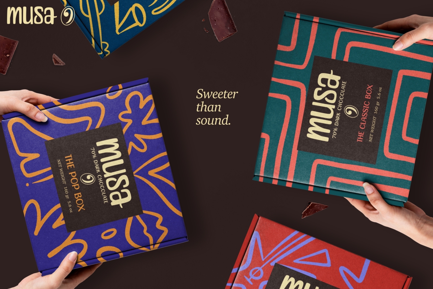 Step into the delicious world of MUSA, where the magic of music collides with the allure of dark chocolate. These music-inspired chocolate boxes are a melodic journey through the greatest genres – from the smooth classics to the playful beats of pop. Each chocolate box variety has a unique blend of flavours, creating an unforgettable experience that resonates with each genre.
