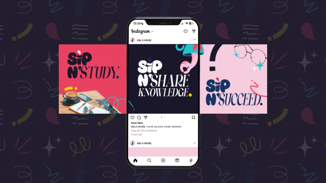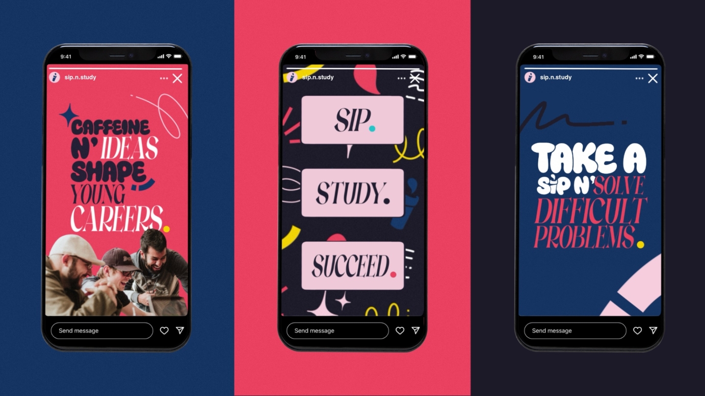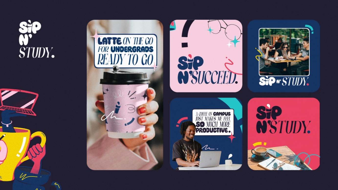 'Sip n' Study' is here to brew brilliance. This Social Campus Cafe is centred around providing top-notch coffee and group study spaces to stimulate the minds of driven young people. The marketing for 'Sip n' Study' is heavily Social Media orientated, tailoring to a young generation of great potential.