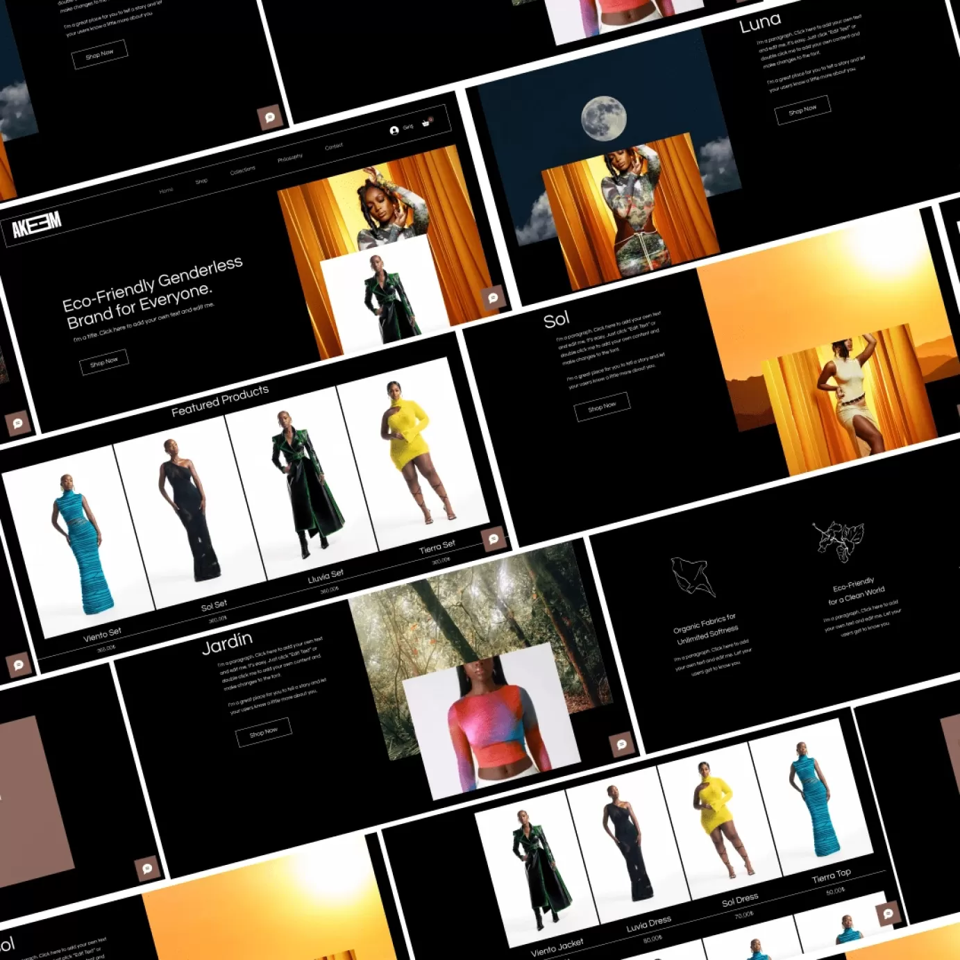 Introducing Akeem, a visionary sustainable fashion brand on a mission to redefine style with a conscious approach. I had the privilege of designing both the website and branding for Akeem. The website reflects the brand's commitment to sustainability, providing an immersive platform that seamlessly blends aesthetics and eco-conscious values.