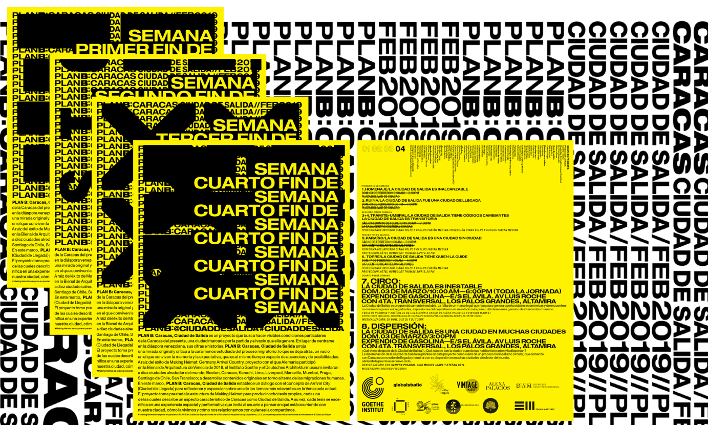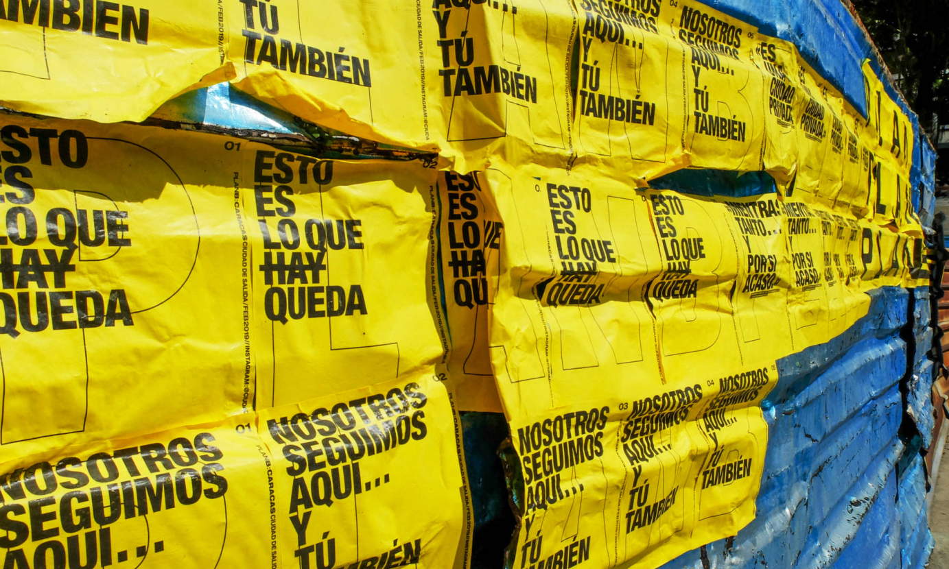 Human migration is an essentially spatial phenomenon. The undergoing massive exodus of Venezuelan citizens is transforming fundamental aspects of our cities and way of life, leaving behind a void with which we are obligated to coexist, a void that assumes multiple forms (from fear and anxiety to expectation and opportunity), a void that is continuously reconfigured and transformed out of what is left behind and with those left behind. In its first presentation in Caracas in February 2019, the project Plan B: Caracas, Departure City aims at creating a series of spatial installations and performances that evidence some of the multiple manifestations of this void, its characters and possibilities.