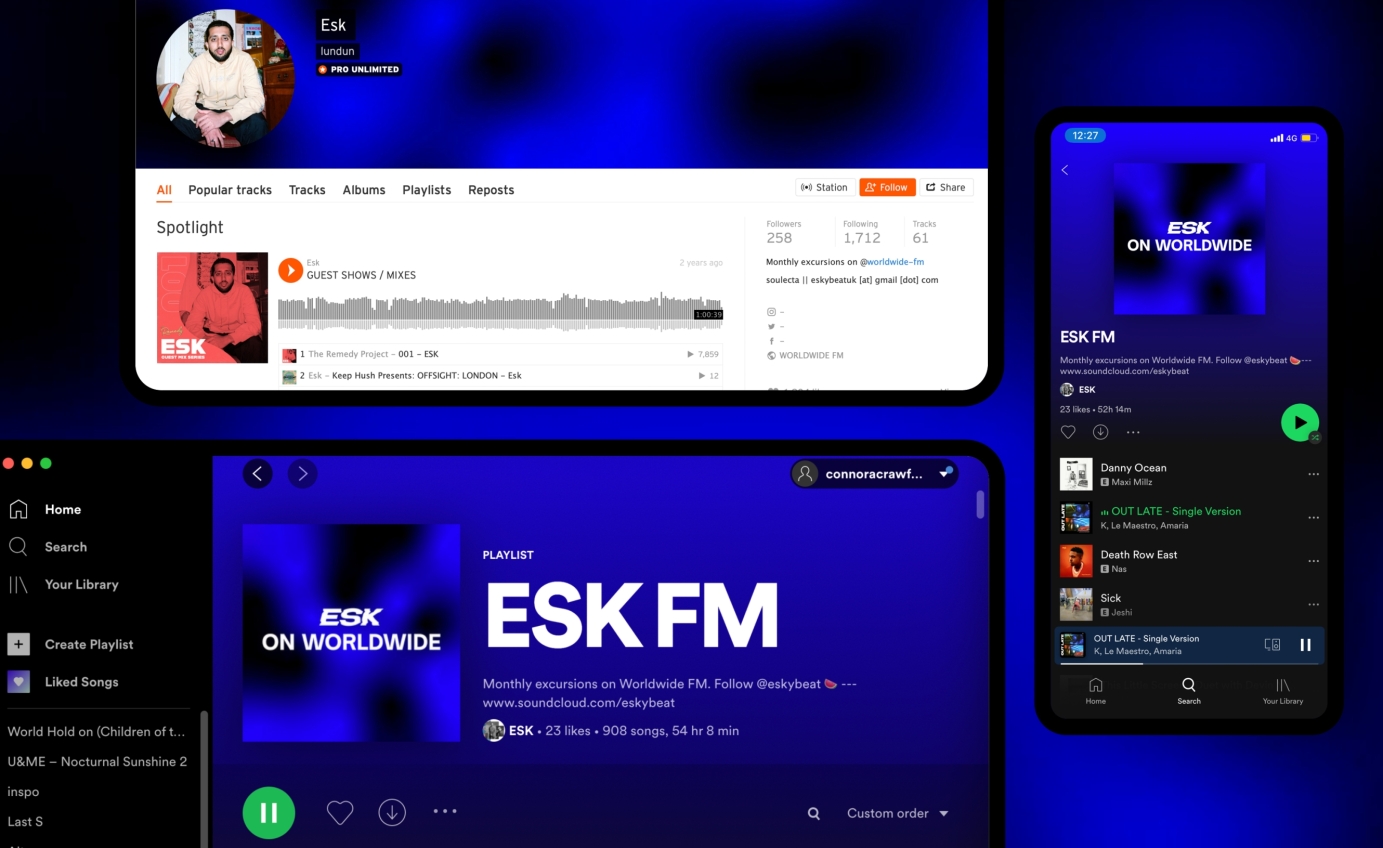 To coincide with the start of DJ ESK’s residency with Worldwide we were approached to create a dynamic and flexible digital brand identity for use across social media and streaming platforms.