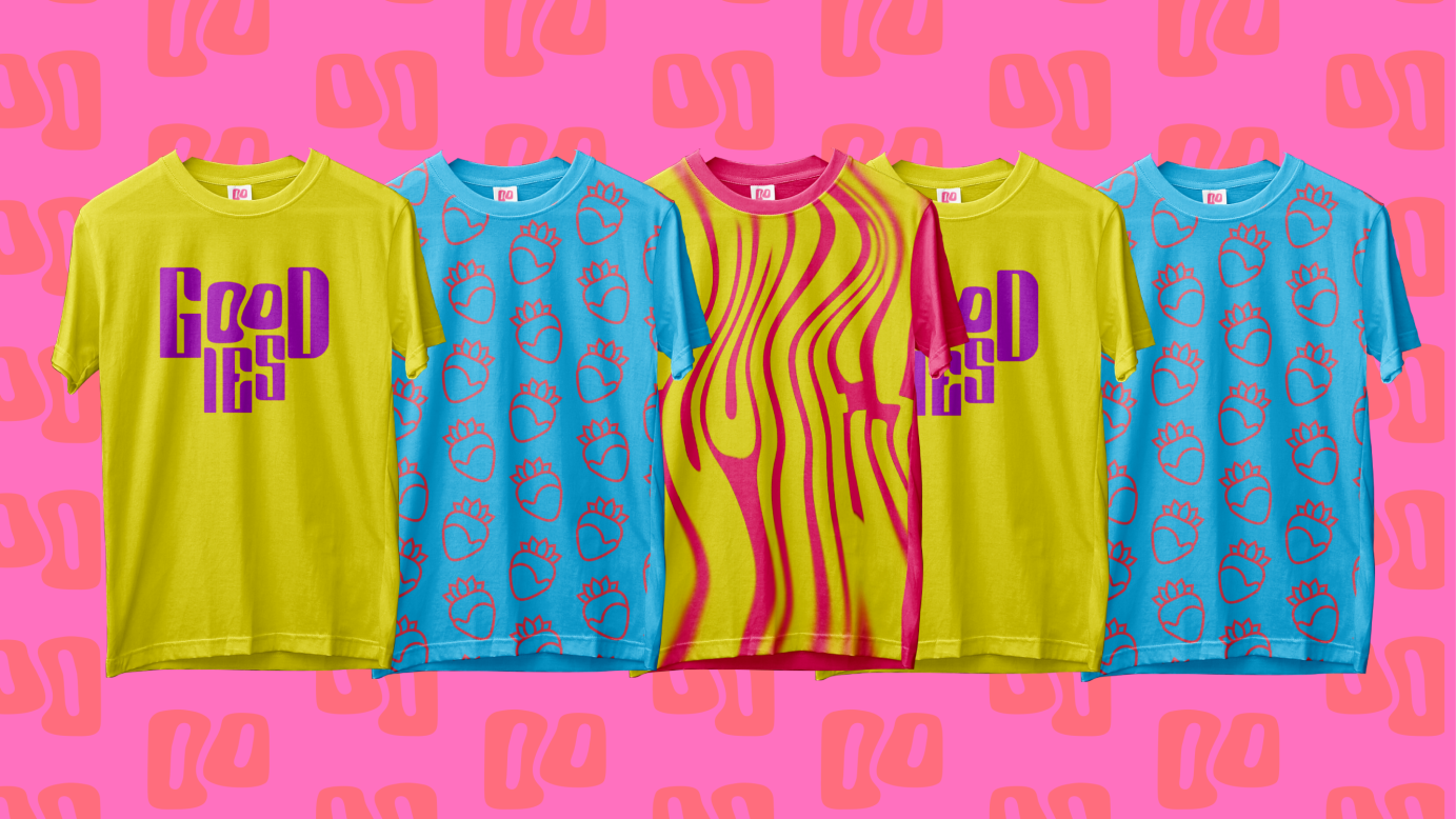 The soft and chunky serif typeface of Arlot is reminiscent of Y2K typefaces and conveys maturity, while the ‘OO’ has been borrowed from the dynamic and playful Fat Kat. This is reminiscent of two baked goods such as cookies, doughnuts or cinnamon rolls being squished together. This serves as GOODIES’s icon and goes on to create the shape for the distinctive perfume bottle. The combination of two fonts further harks to the marriage of taste and smell in GOODIES’s brand identity.Â