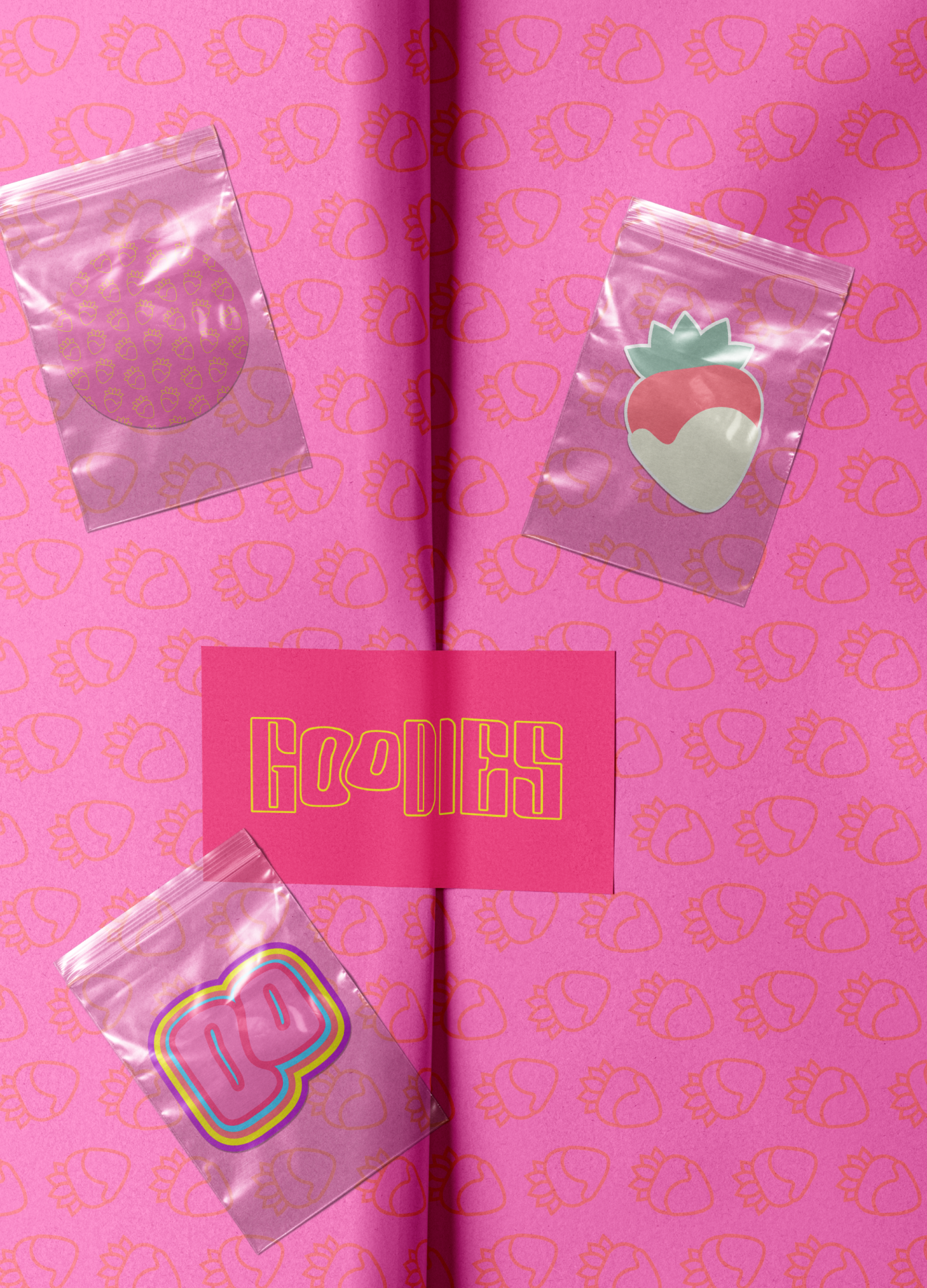 For GOODIES’s first scent, Strawberries and Cream, I created illustrations of a whole strawberry dipped in whipped cream. I drew a simple illustration using just the stroke and coloured-in one that could be turned into brand merch like stickers.