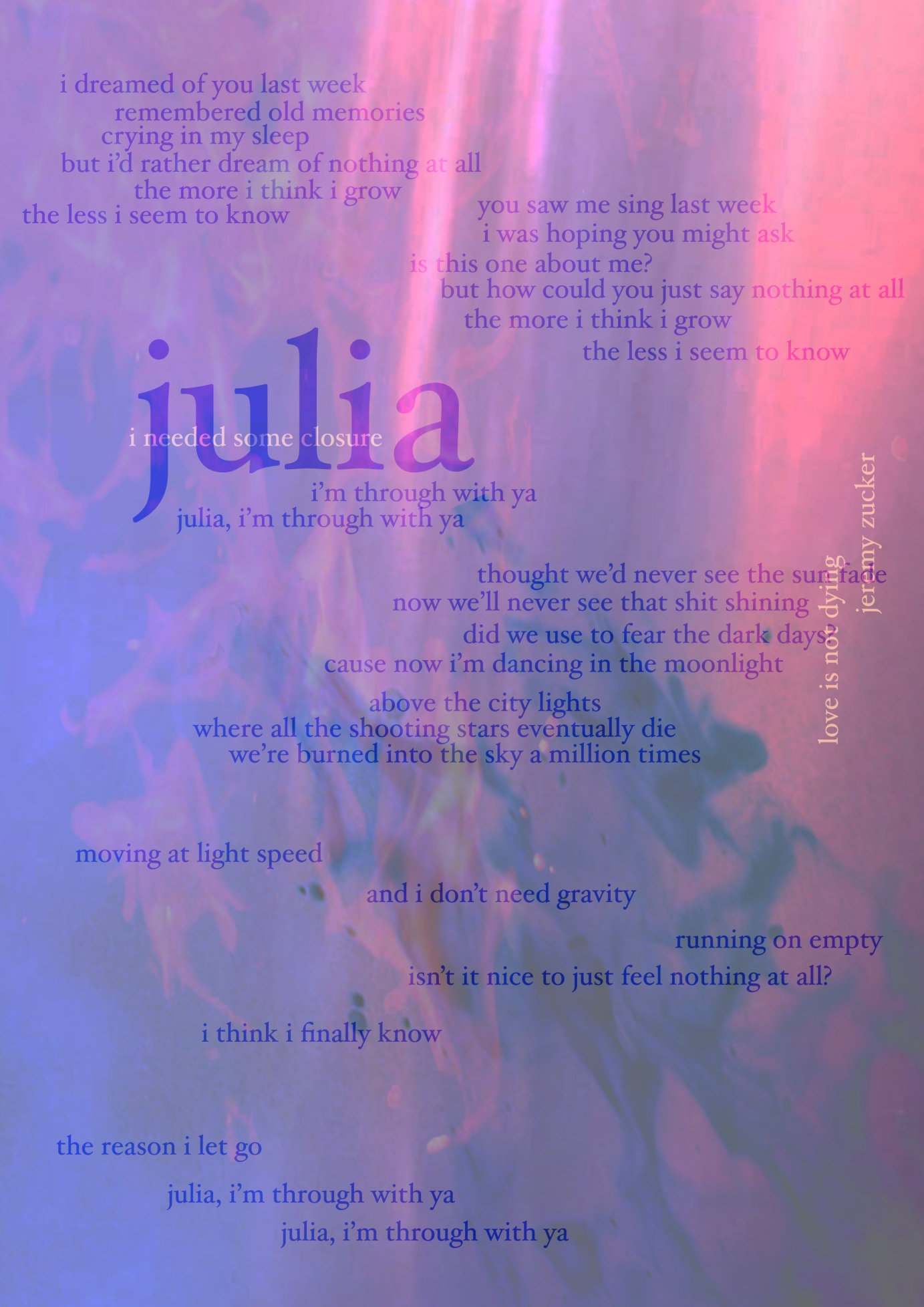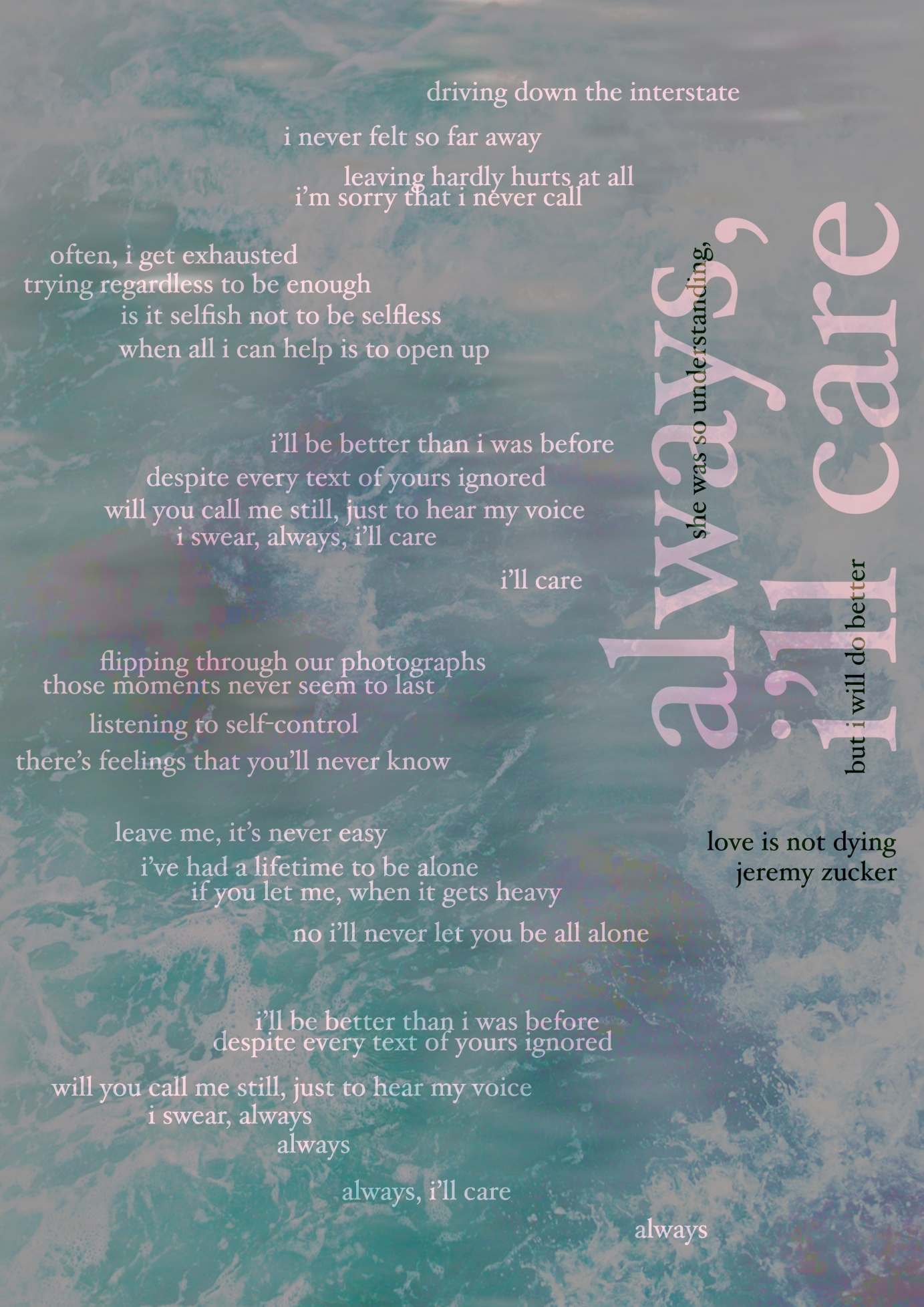 Lyric Posters for Jeremy Zucker "love is not dying"