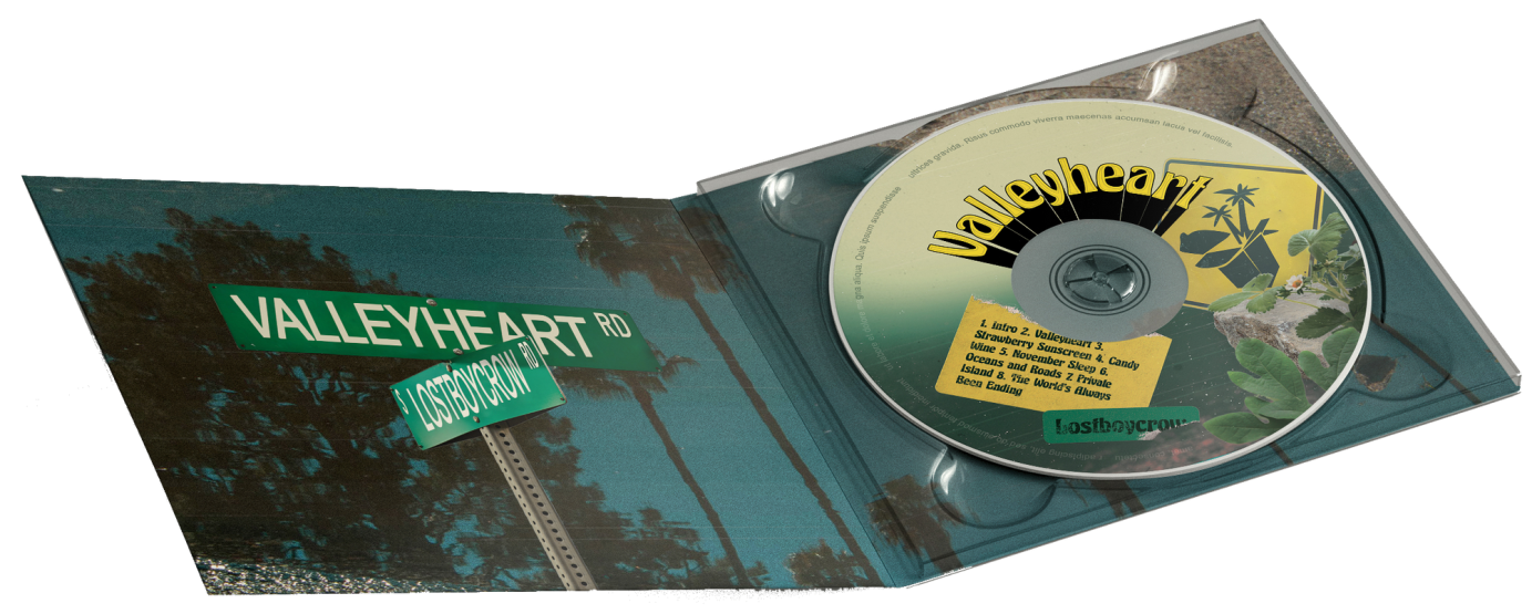 Release campaign for Lostboycrow’s full-length album Valleyeart, centered around his home in Los Angeles, California. 360 release assets included CD and vinyl packaging, merch, single and album art, social skins, music video titles, an Instagram filter, and more.