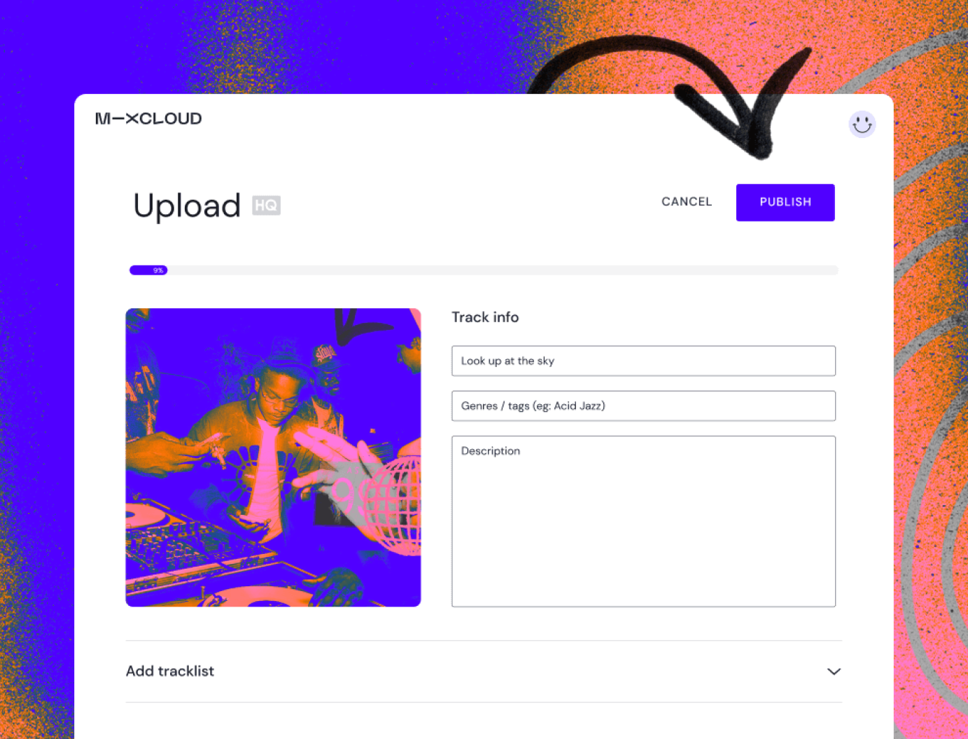 In-house Brand Refresh for music-streaming platform Mixcloud; updated typography, brand colours, photography, animation, social and marketing assets and on platform imagery and design style. The platform is what it is because of the passion of curators, creators, tastemakers and music obsessives, every part of Mixcloud is embedded deep in the culture of underground music. Reflecting this is a new look which nods to decades of underground, DIY and grassroots approaches to image making within music culture. From Punk Zines to Acid-House flyers, Mixcloud's new look reflects it's deep understanding of global music subcultures past & present. It's a visual celebration of Mixcloud's ethos of music discovery created by people, not by algorithms, mirroring that in the design by instilling the human touch; photography of our creators, tactility of hand-drawn and hand composed collage and a DIY, playful approach to image making.