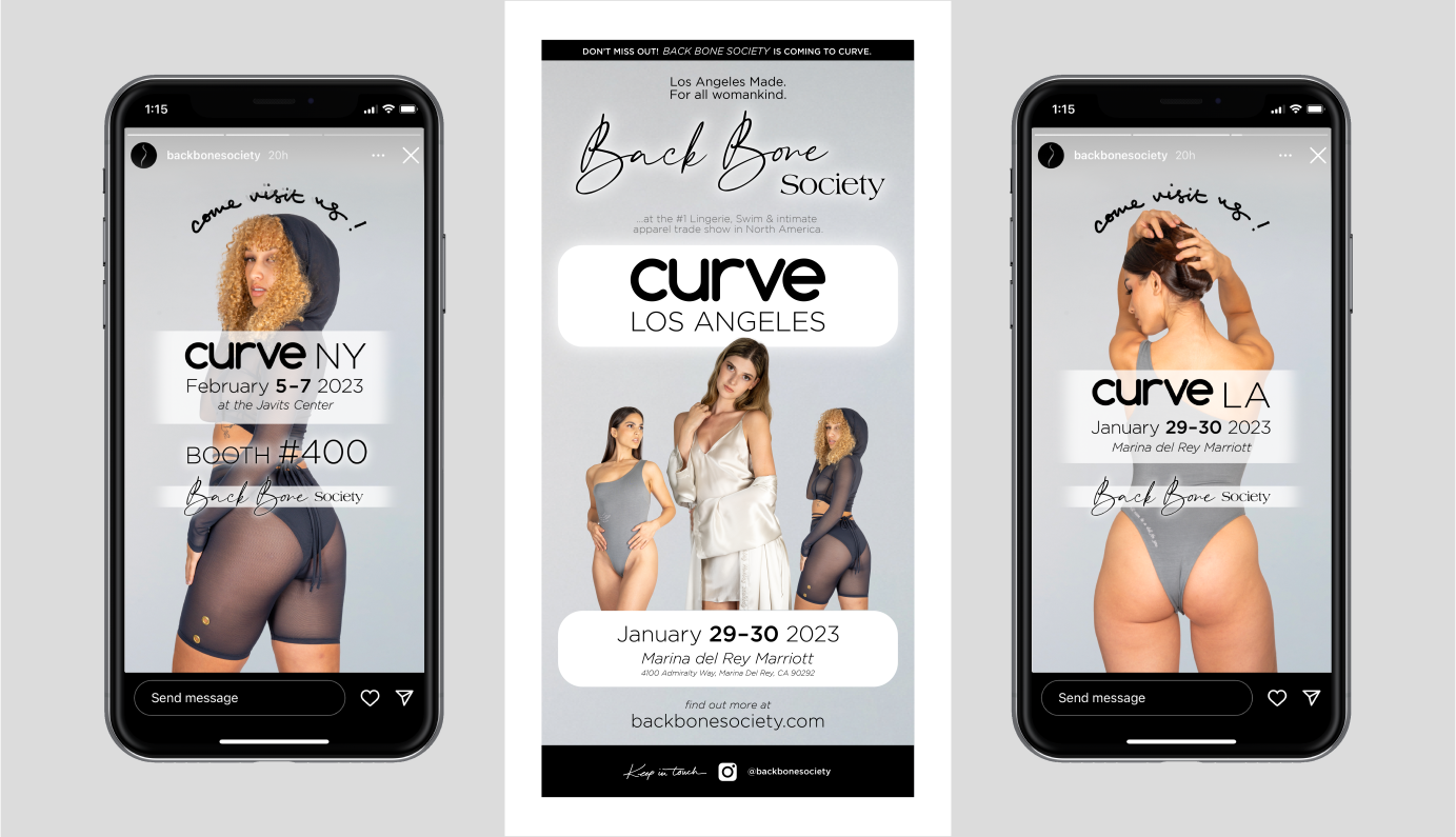 Social media graphics and email blasts for LA-based fashion brand, "Back Bone Society".