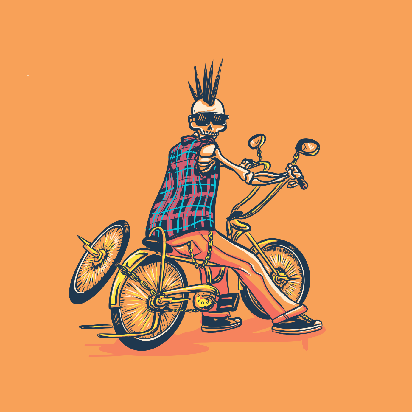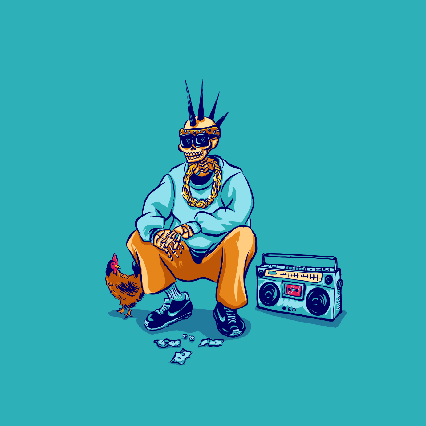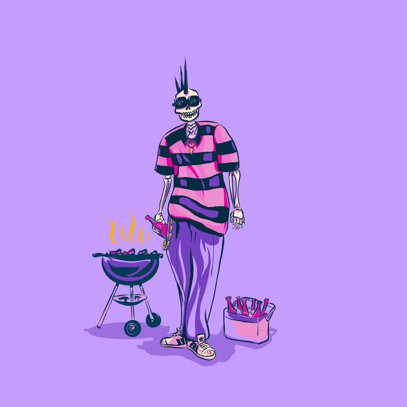 Collection of Illustrations representing Chicanx culture using skeletons as the models.