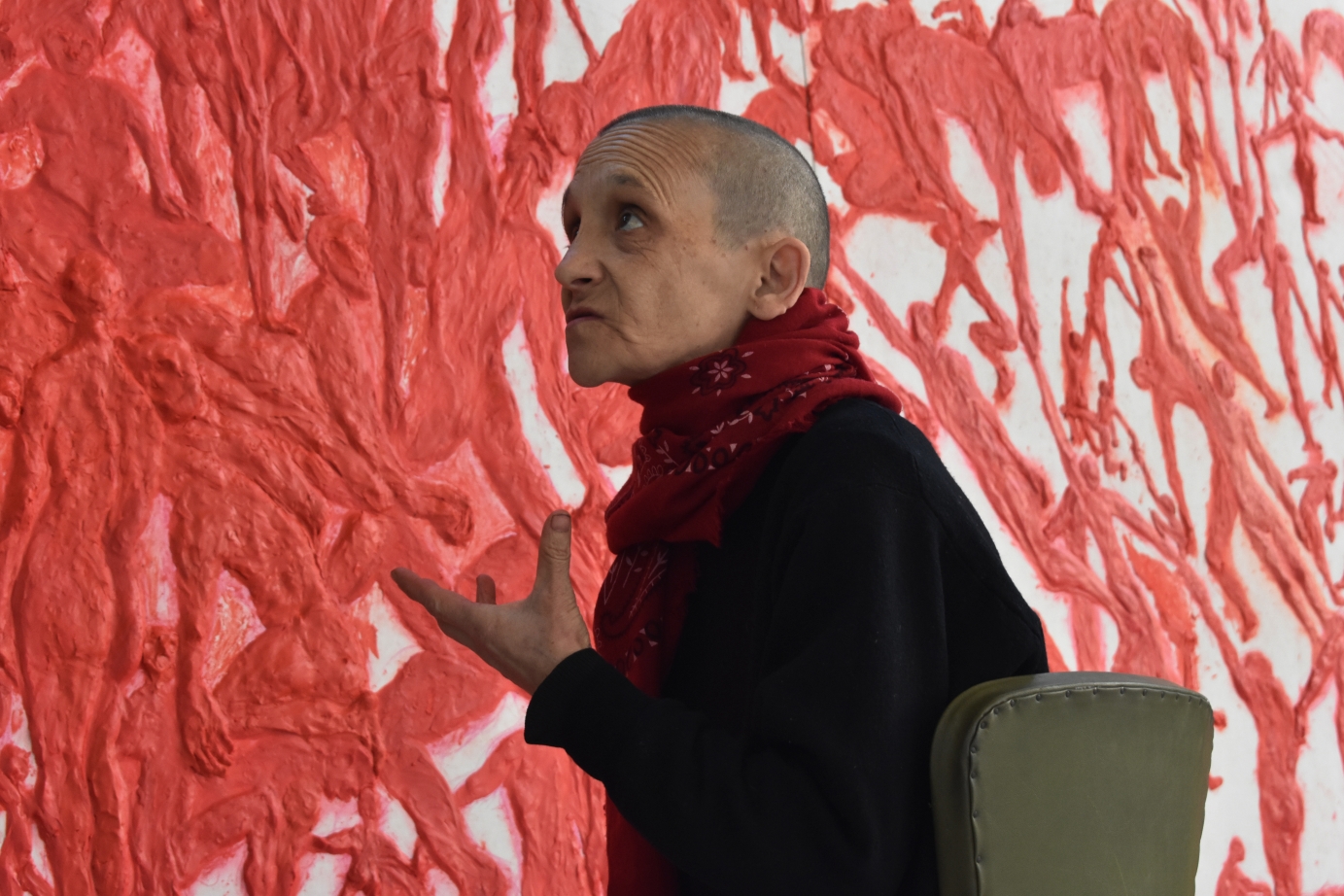 Photos of artist Sandra Tomboloni as she was working to set up her exhibition at the Vannucci gallery.