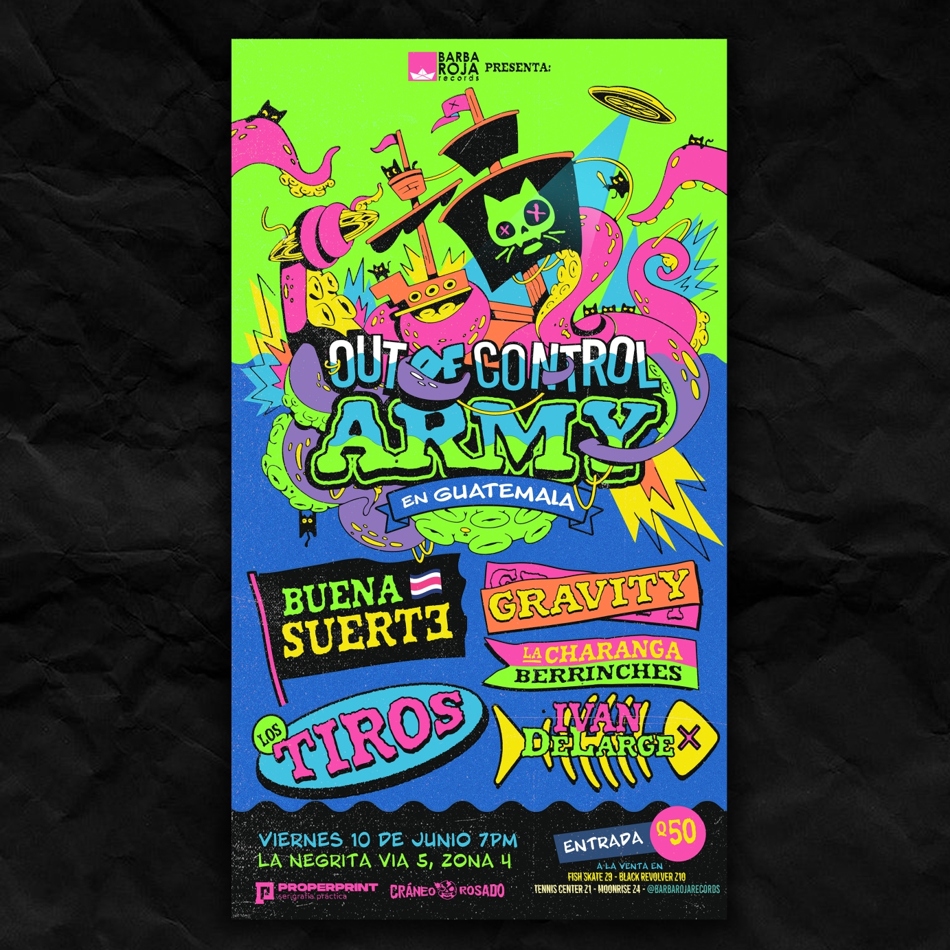 Gig poster for Out Of Control Army show in Guatemala City