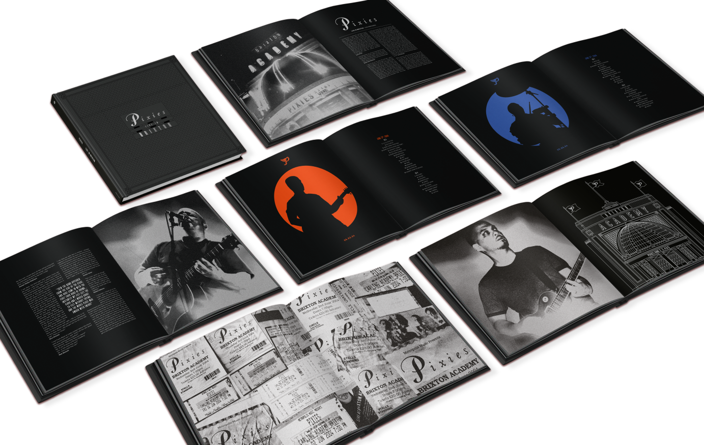 Collectible Vinyl and CD box-sets for iconic alternative rock band, Pixies. Celebrating their legendary 2004 reunion tour with shows at Brixton Academy and Coachella Music Festival, the inspiration for both came from a set of Brixton Academy blueprints which were used as reference to create striking architectural illustrations of each venue paired with stripped back stark graphic shapes and colours.