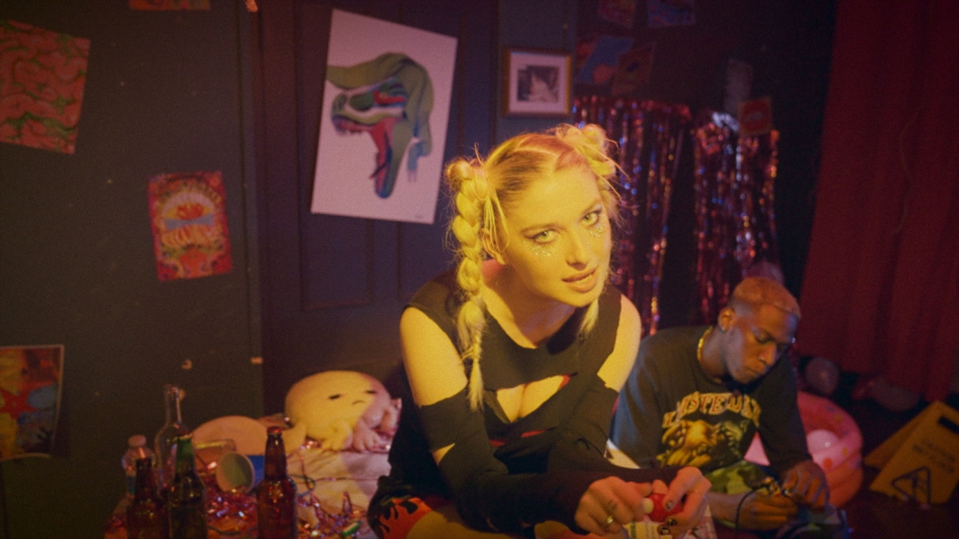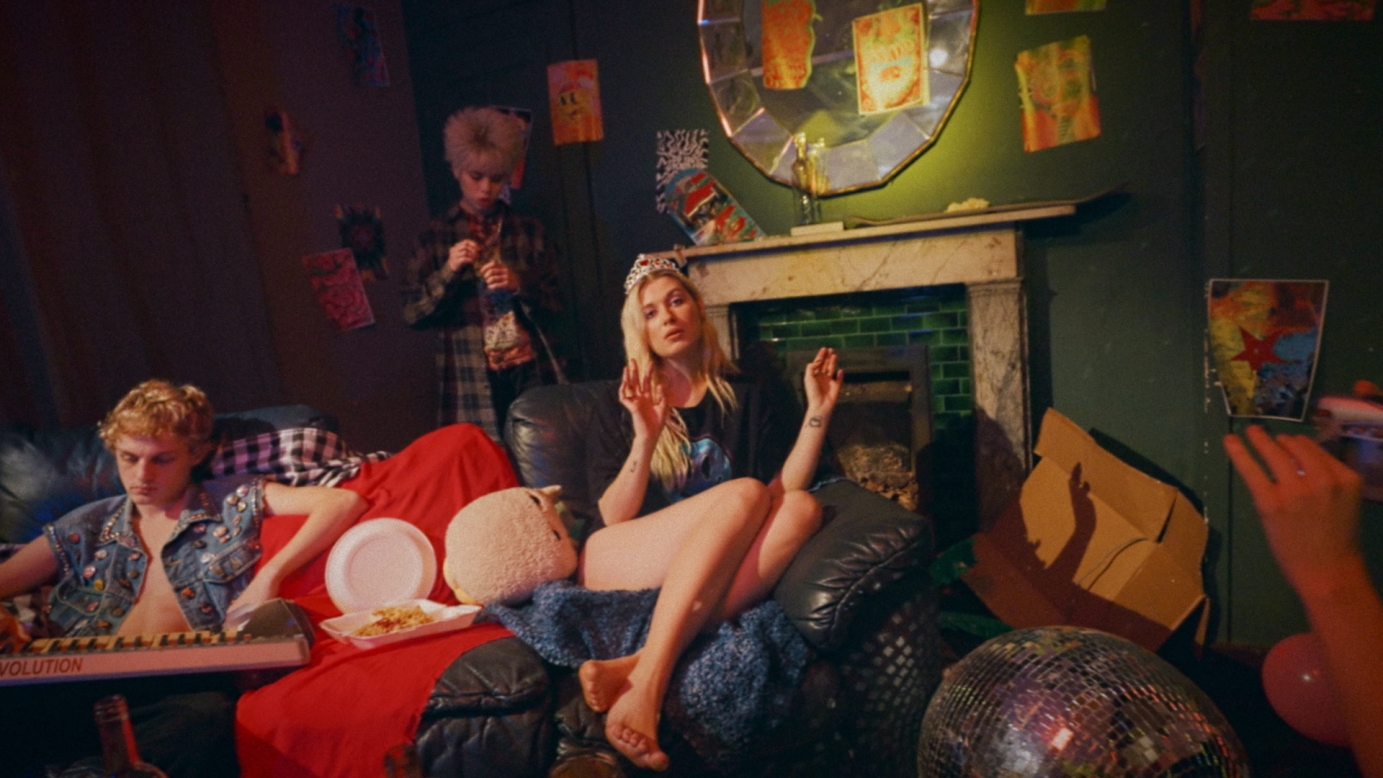 A VINTAGE SURREALIST VISUAL OF A CHAOTIC BAND GREEN ROOM TO LIVE PERFORMANCE