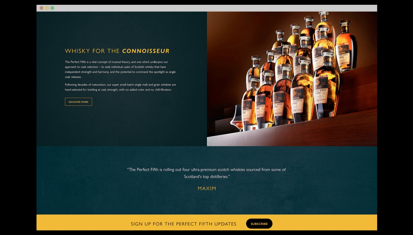 I have been working with The Perfect Fifth Whisky company for the past year on new projects and they asked me to redesign their website to include all of the latest news, company details, and also their new whisky products.