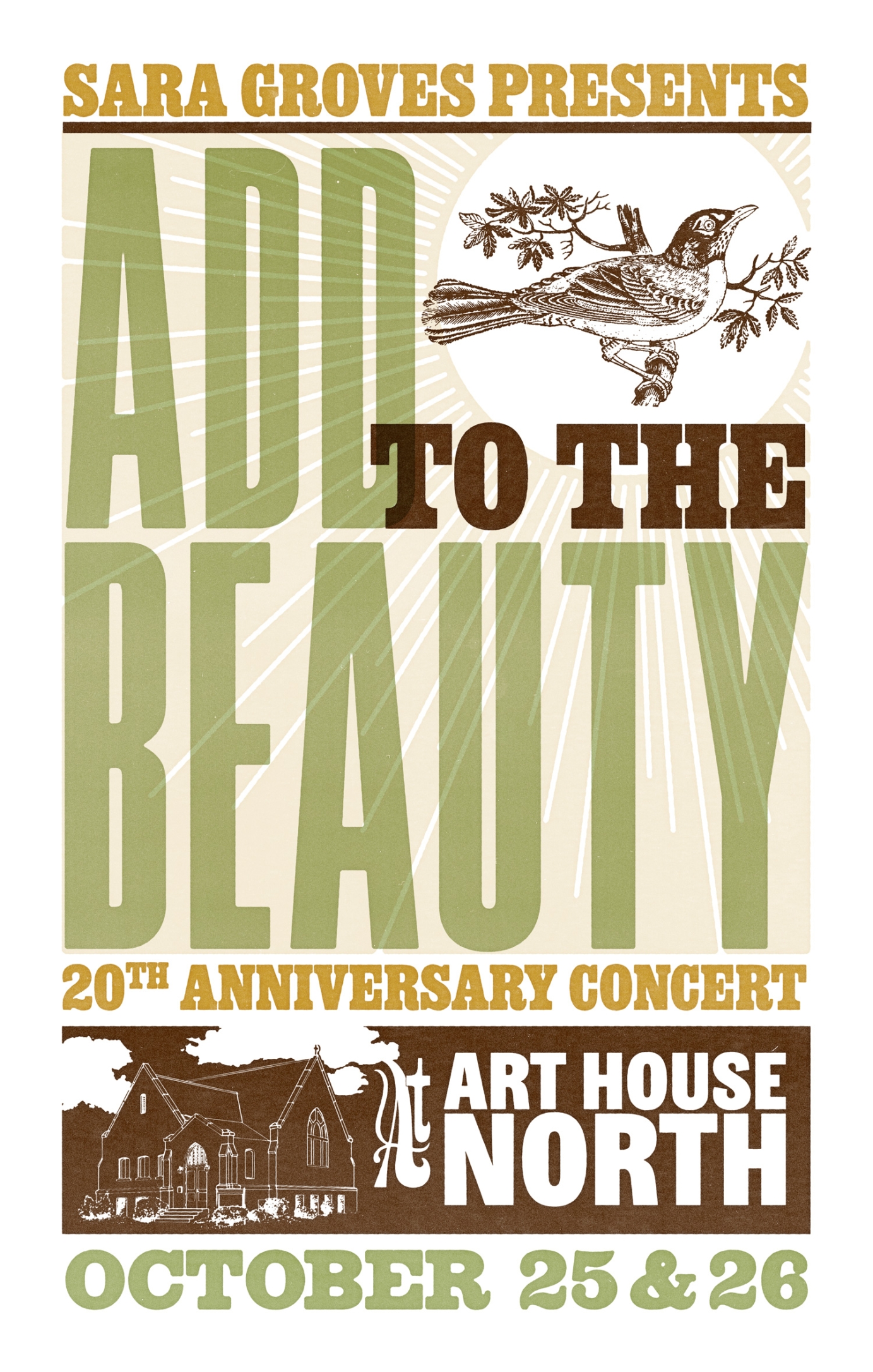 Promotional concert poster in the style of a Hatch Show Print